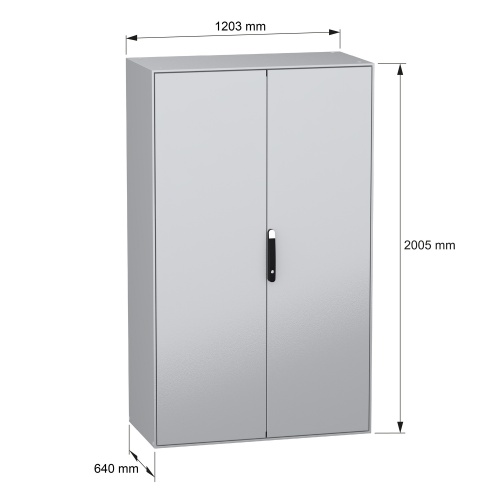 Schneider Electric NSYSM2012602DP - Galvanized Steel - 4 points lock, handle with 5 mm double bar insert - 2 Door: Solid - Plain Steel - Standard - 78.74" x 47.24" x 23.62" (HxWxD)