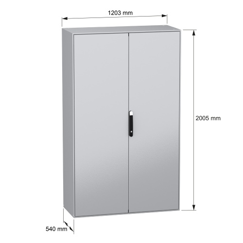 Schneider Electric NSYSM2012502DP - Galvanized Steel - 4 points lock, handle with 5 mm double bar insert - 2 Door: Solid - Plain Steel - Standard - 78.74" x 47.24" x 19.69" (HxWxD)