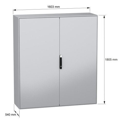 Schneider Electric NSYSM1816502D - Sheet Steel - 4 points lock, handle with 5 mm double bar insert - 2 Door: Solid - Without Mounting Plate - Standard - 70.87" x 62.99" x 19.69" (HxWxD)