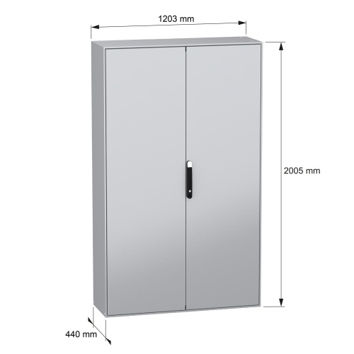 Schneider Electric NSYSM2012402DP - Galvanized Steel - 4-Points lock, handle with 5 mm double bar insert - 2 Door: Solid - Plain Steel - Standard - 78.74" x 47.24" x 15.75" (HxWxD)