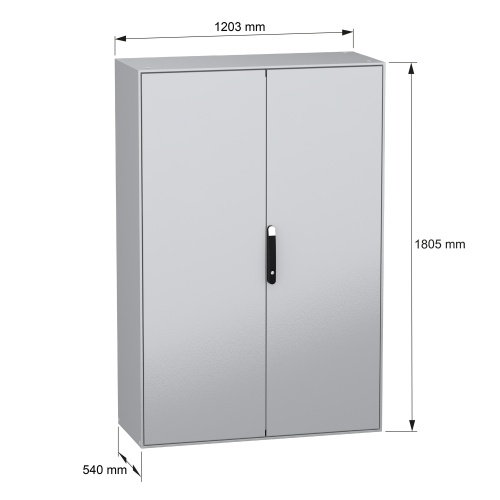 Schneider Electric NSYSM1812502DP - Galvanized Steel - 4-Points lock, handle with 5 mm double bar insert - 2 Door: Solid - Plain Steel - Standard - 70.87" x 47.24" x 19.69" (HxWxD)