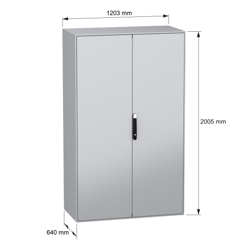 Schneider Electric NSYSM2012602D - Sheet Steel - 4 points lock, handle with 5 mm double bar insert - 2 Door: Solid - Without Mounting Plate - Standard - 78.74" x 47.24" x 23.62" (HxWxD)