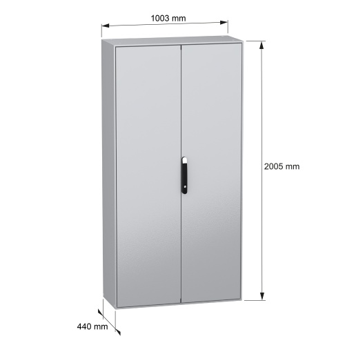 Schneider Electric NSYSM2010402DP - Galvanized Steel - 4 points lock, handle with 5 mm double bar insert - 2 Door: Solid - Plain Steel - Standard - 78.74" x 39.37" x 15.75" (HxWxD)