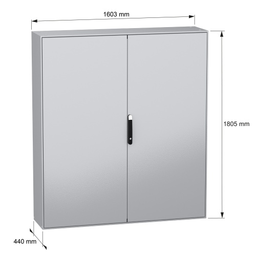 Schneider Electric NSYSM1816402D - Sheet Steel - 4-Points lock, handle with 5 mm double bar insert - 2 Door: Solid - Without Mounting Plate - Standard - 70.87" x 62.99" x 15.75" (HxWxD)