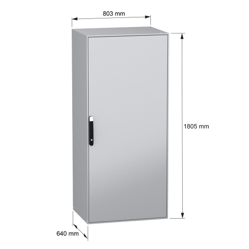 Schneider Electric NSYSM18860P - Galvanized Steel - 4-Points lock, handle with 5 mm double bar insert - 1 Door: Solid - Plain Steel - Standard - 70.87" x 31.5" x 23.62" (HxWxD)