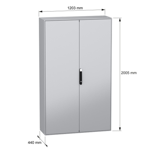 Schneider Electric NSYSM2012402D - Sheet Steel - 4 points lock, handle with 5 mm double bar insert - 2 Door: Solid - Without Mounting Plate - Standard - 78.74" x 47.24" x 15.75" (HxWxD)