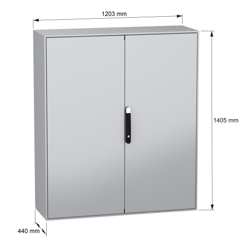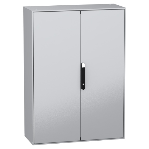 Schneider Electric NSYSM1412402DP - Galvanized Steel - 4-Points lock, handle with 5 mm double bar insert - 2 Door: Solid - Plain Steel - Standard - 55.12" x 47.24" x 15.75" (HxWxD)