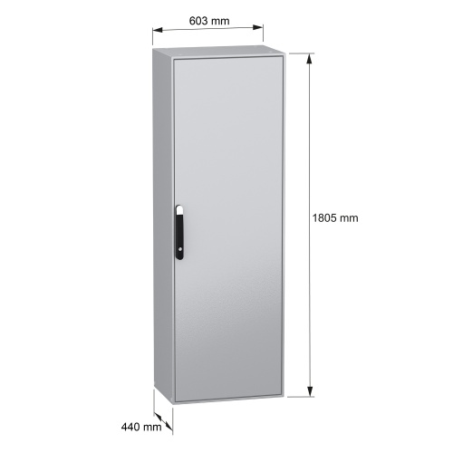 Schneider Electric NSYSM18640P - Galvanized Steel - 4-Points lock, handle with 5 mm double bar insert - 1 Door: Solid - Plain Steel - Standard - 70.87" x 23.62" x 15.75" (HxWxD)