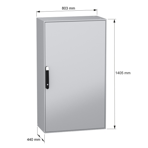 Schneider Electric NSYSM14840P - Galvanized Steel - 4-Points lock, handle with 5 mm double bar insert - 1 Door: Solid - Plain Steel - Standard - 55.12" x 31.5" x 15.75" (HxWxD)
