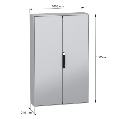 Schneider Electric NSYSM1610302D - Sheet Steel - 4 points lock, handle with 5 mm double bar insert - 2 Door: Solid - Without Mounting Plate - Standard - 62.99" x 39.37" x 11.81" (HxWxD)