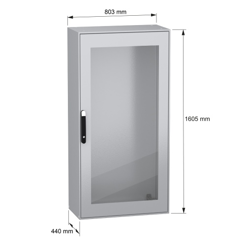 Schneider Electric NSYSM16840T - Sheet Steel - 4 points lock, handle with 5 mm double bar insert - 1 Door: Glass - Without Mounting Plate - Standard - 62.99" x 31.5" x 15.75" (HxWxD)