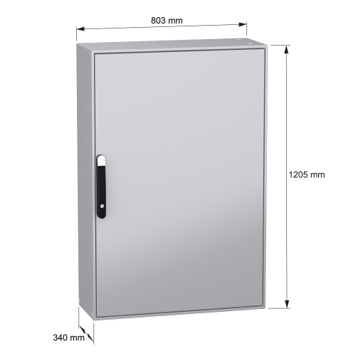 Schneider Electric NSYSM12830P - Galvanized Steel - 4 points lock, handle with 5 mm double bar insert - 1 Door: Solid - Plain Steel - Standard - 47.24" x 31.5" x 11.81" (HxWxD)