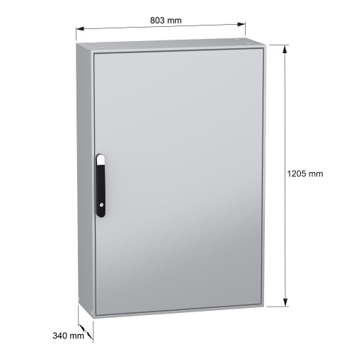 Schneider Electric NSYSM12830 - Sheet Steel - 4 points lock, handle with 5 mm double bar insert - 1 Door: Solid - Without Mounting Plate - Standard - 47.24" x 31.5" x 11.81" (HxWxD)