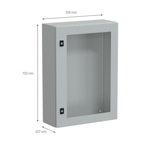The compact enclosure is made of steel (body), steel and security glass (door), making it durable and resistant