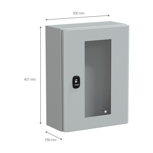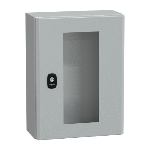Schneider Electric NSYS3D4315T - Steel - 3 mm double-bar lock - IK08 - NEMA 4X/13 - 1 Door: Glass - Without Mounting Plate - Standard - 15.75" x 11.81" x 5.91" (HxWxD)