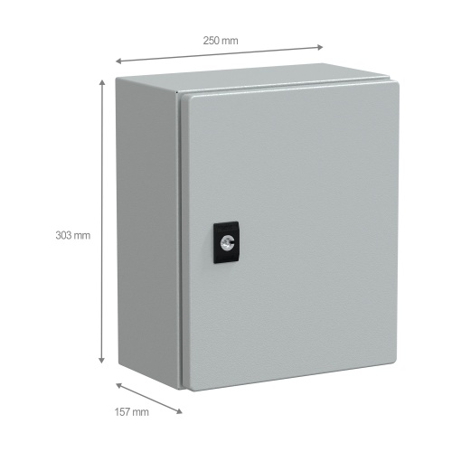 The compact enclosure is made of galvanized steel (body), steel (door), making it durable and resistant
