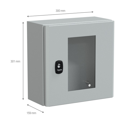 Schneider Electric NSYS3D3315T - Steel - 3 mm double-bar lock - IK08 - NEMA 4X/13 - 1 Door: Glass - Without Mounting Plate - Standard - 11.81" x 11.81" x 5.91" (HxWxD)