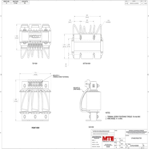 MTE RLW-003503 RLW Series Reactor - 240-480 Volt, 10-25 HP, 0.71mH, 35 Amp, Open