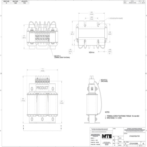 MTE RLW-002806 RLW Series Reactor - 600 Volt, 20-25 HP, 1.6mH, 28 Amp, Open