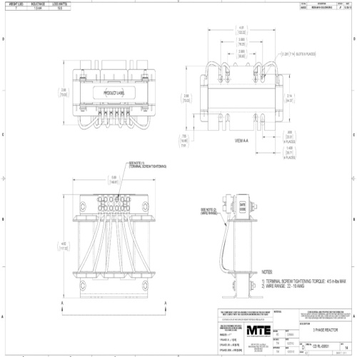 MTE RL-00801 RL Series Line/load Reactor - 208 Volt, 1 HP, 1.5mH, 8 Amp, Open, 60 Hz, 3% Impedance