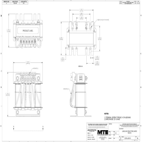 MTE RL-00101 - RL Line/Load Reactors are renowned for their exceptional power quality enhancement capabilities, ensuring uninterrupted performance of sensitive equipment such as variable frequency drives (VFDs). These reactors, which can be deployed on both the line and load sides, boast unparalleled resilience against power line disturbances, significantly reducing the risk of equipment damage or shutdowns. With robust construction and high continuous service factors, they effectively minimize nuisance tripping, harmonic distortion, and long lead effects, thereby enhancing power quality, productivity, and providing users with complete peace of mind. Additionally, their harmonic compensation and protection features make them suitable for various applications, helping users meet IEEE-519 requirements effortlessly.
