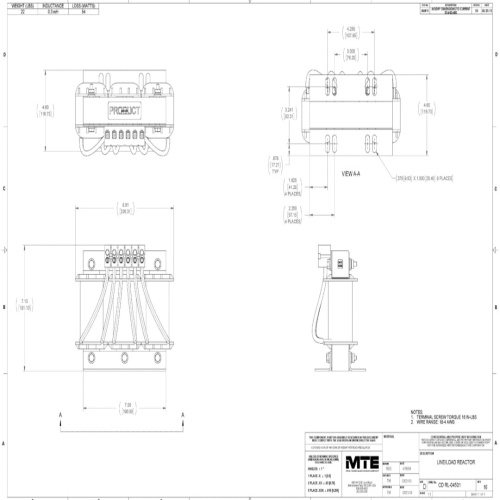 MTE RL-04501 RL Series Line/load Reactor - 208 Volt, 15 HP, 0.3mH, 45 Amp, Open