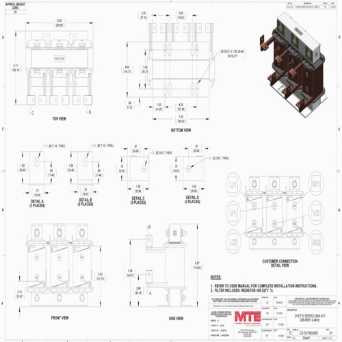 MTE DVTK0200E dV E-Series - 200 Amp, 208-600 VAC, Kit, 75-200 HP, 2-4 kHz