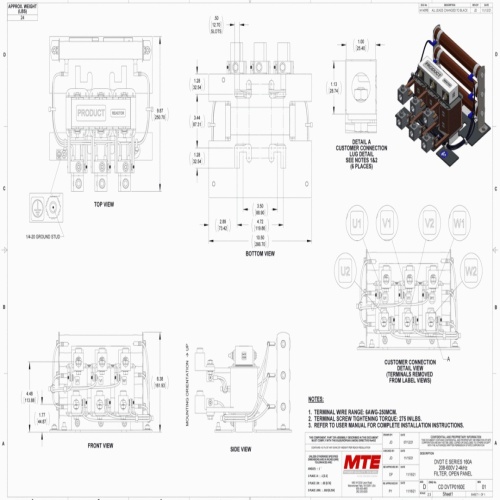 MTE DVTP0160E - Introducing the dV E-Series by MTE Corporation: Complete protection in a convenient design. Engineered to prevent motor windings damage and insulation failure, our dV/dt motor protection filters ensure seamless operation during critical times. Offering triple protection with reflective wave mitigation, rise time reduction, and peak voltage production, the dV E-Series guarantees premium motor protection, extended cable life, and unmatched efficiency. Compared to competitors, it's up to 60% more efficient, 73% lighter, and boasts a 35% smaller footprint. Backed by our industry-leading Performance Guarantee and a three-year warranty, it's the ideal solution for essential motor protection. Experience efficiency, convenience, and peace of mind with the dV E-Series from MTE Corporation.