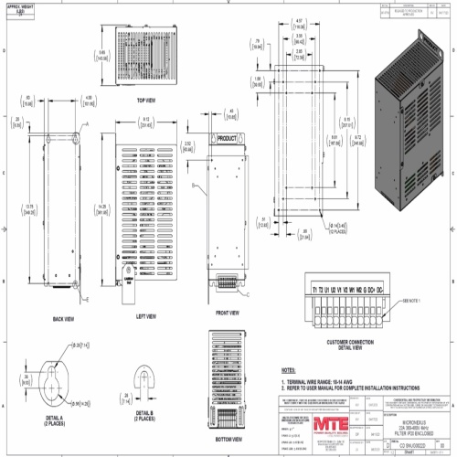 MTE SNUG0022D - Introducing the microNexus™ Filter by MTE Corporation: Compact yet powerful, it safeguards micro drive applications by eliminating voltage spikes, reflective waves, and common mode voltage generated by VFDs. This ensures extended motor life, reduced noise, and minimized cable heating. With provisions for mounting VFDs directly to the filter, it saves space and simplifies installation. Backed by a five-year warranty, the microNexus™ Filter ensures efficient operation and reduced maintenance.