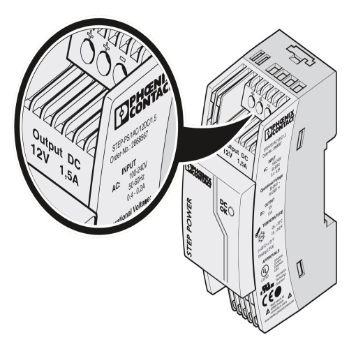 STEP-PS/ 1AC/12DC/1.5 Phoenix Contact STEP-PS/1AC/12DC/1.5. 12 volt 1.5 Amp output Power Supply(Class 1 Div 2) and 85-264 Vac or 95-250 Vdc input voltage. Temperature range of -13 F to 158 F. Din rail mount.