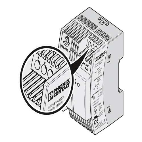 Phoenix Contact 2868570 A primary-switched step-down power supply designed for DIN rail installation is available with a single-phase AC input and provides a stable 12V direct current output at a maximum capacity of 3 amps.