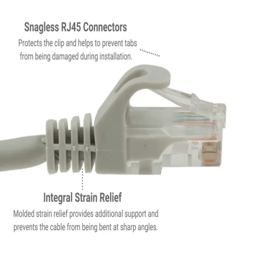 Cable PC5-GY-0.5-EZ - Cat 5E Ethernet Patch Cable, Snagless, UTP, 0.5 ft, Gray