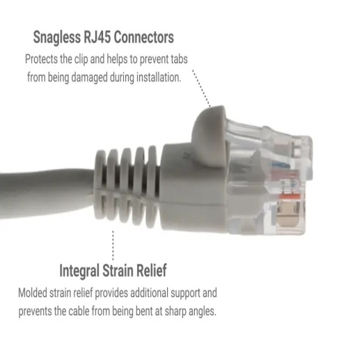 Snagless Cat5e patch cables for hassle-free installaion and removal.