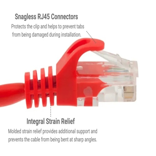 Cable PC5-RE-0.5-EZ - Cat 5E Ethernet Patch Cable, Snagless, UTP, 0.5 ft, Red