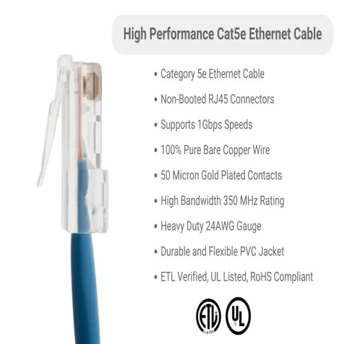 Cable PC5NB-BL-25 - Cat 5E Ethernet Patch Cable, Non-Booted, UTP, 25 ft, Blue