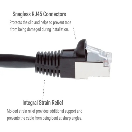 Cable PC5S-BK-03 - Cat 5E Shielded Ethernet Patch Cable, Half-moon Boot, 3 ft, Black