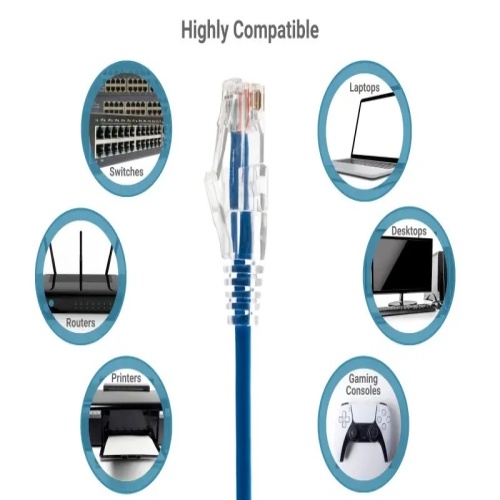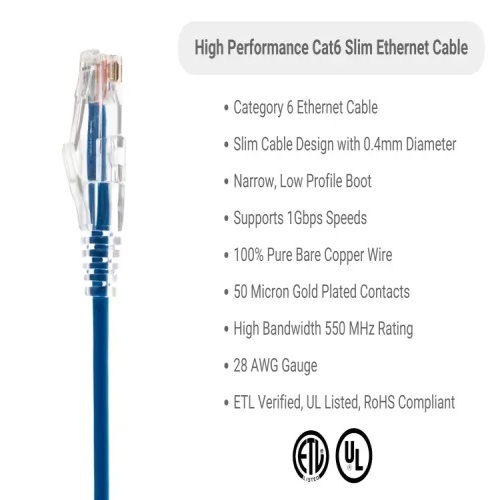 Cable PC6-BL-02-SLIM Ethernet Patch Cable - Cat 6, 2', PVC, 28 AWG, 550 Mhz, Blue