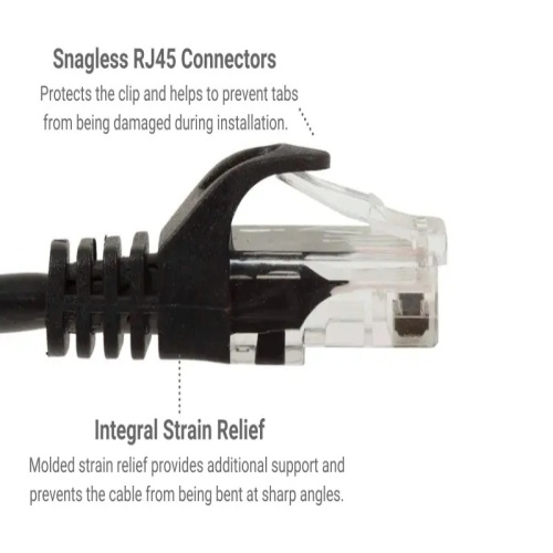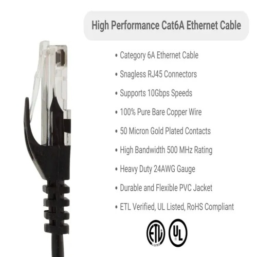 Cable PC6A-BK-01-EZ - Cat 6A Ethernet Patch Cables, Snagless, UTP, 1 ft, Black