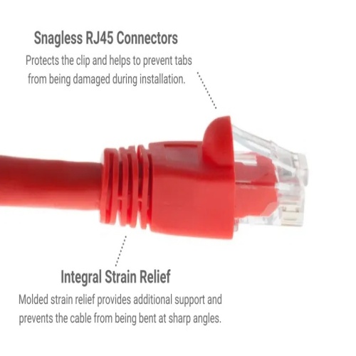 Cable PC6A-RE-35 - Cat 6A Ethernet Patch Cable, Half-moon Boot, UTP, 35 ft, Red