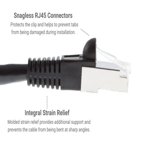 Cable PC6S-BK-100 - 100ft Black Shielded Cat 6 Ethernet Patch Cable, Snagless Boot