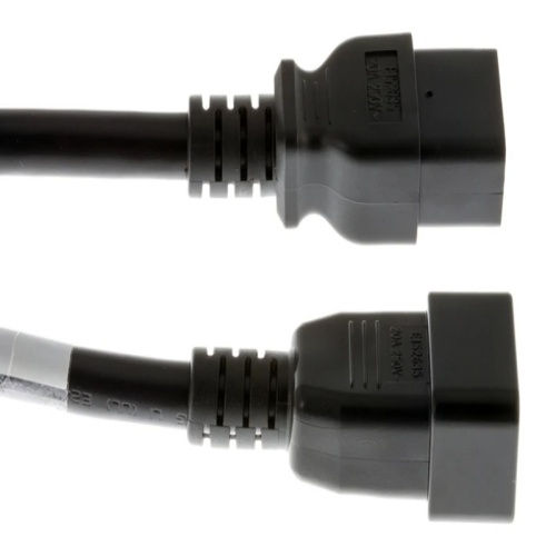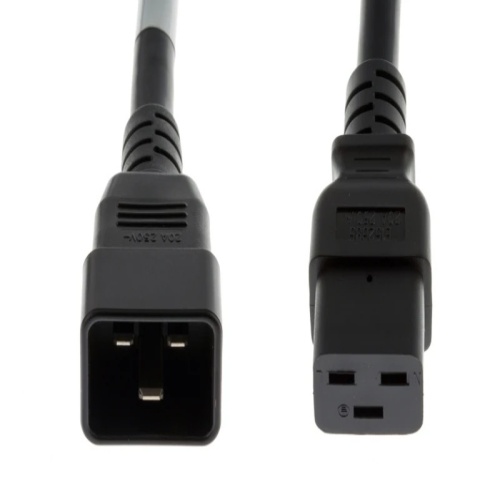 Its design features a C20 plug on one end and a C19 receptacle on the other, which are commonly found in data centres, server rooms, and various industrial settings.