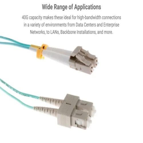 Aqua OM4 Multimode LC to SC Fiber Optic Cable | 40 Gigabit | 50/125 | Laser Optimized (50/125) | 2.0mm | UPC