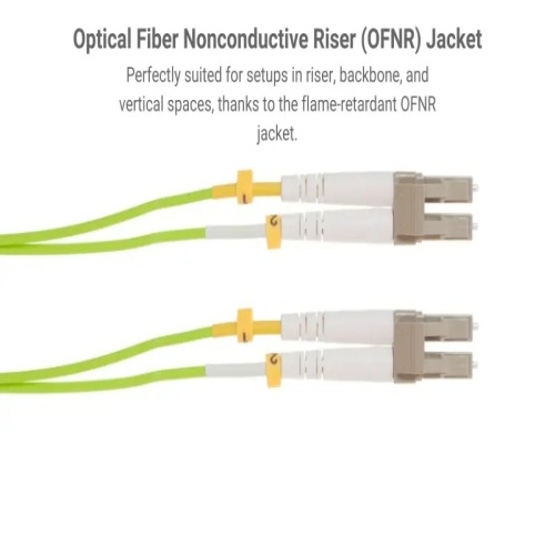 Flame-retardant OFNR (Optical Fiber, Nonconductive, Riser) jacket compliant with standards for use in riser applications.