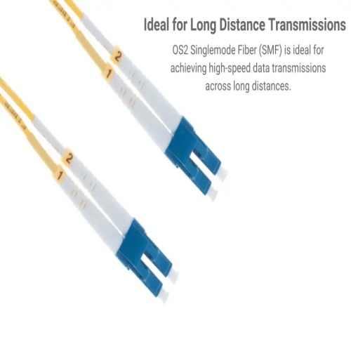 OS2 9/125μm singlemode fiber (SMF) patch cable designed to maintain signal quality over long distances.