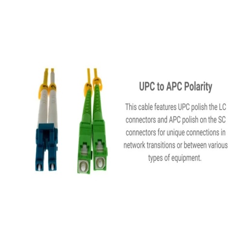 Features Ultra Physical Contact (UPC) polish on the LC connectors and Angled Physical Contact (APC) polish on the SC connectors to reduce back reflections and enhance signal quality.