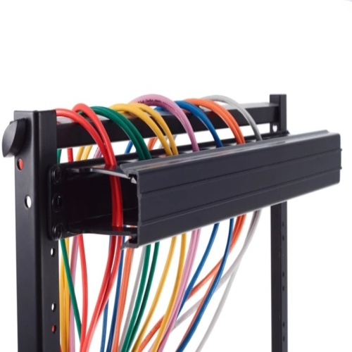 Our single-sided cable organizer routes cable horizontally across a 19" networking rack.