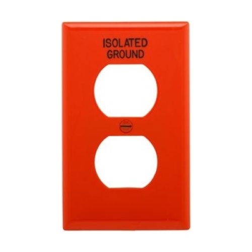 Eaton IG5132RN-BOX - Duplex receptacle wallplate, Premarked "ISOLATED GROUND", 10% Deeper than Standard, Orange, Duplex receptacle Cutout, Nylon, Single- gang, Standard, ED Box