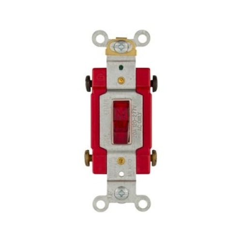 Eaton AH1222PL - Arrow Hart industrial grade toggle switch, #14-10 AWG, 20A, Industrial, Flush, 120/277V, Back and side, Screw, Red, Double-Pole, Dual-pole, Brass, Phenolic