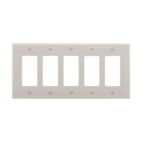 Eaton PJ265W - Decorator / GFCI wallplate, White, Decorator Cutout, Polycarbonate, Five- gang, Mid-size