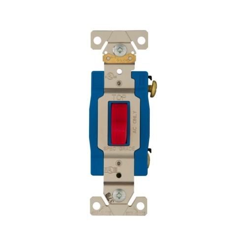 Eaton AH1201RD - Arrow Hart industrial grade toggle switch, #14-10 AWG, 15A, Industrial, Flush, 120/277V, Back and side, Screw, Red, Single-Pole, Single-Pole, Brass, Polycarbonate